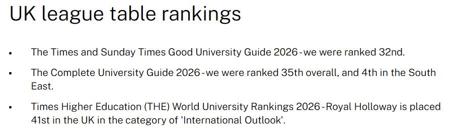 It’s not just the THE’s analysis that has marked Royal Holloway’s decline either. Several weeks ago The Guardian published its UK university rankings for 2026 which saw Royal Holloway’s position drop a whopping 27 places in just one year from 52nd in 2025 to 79th for 2026.